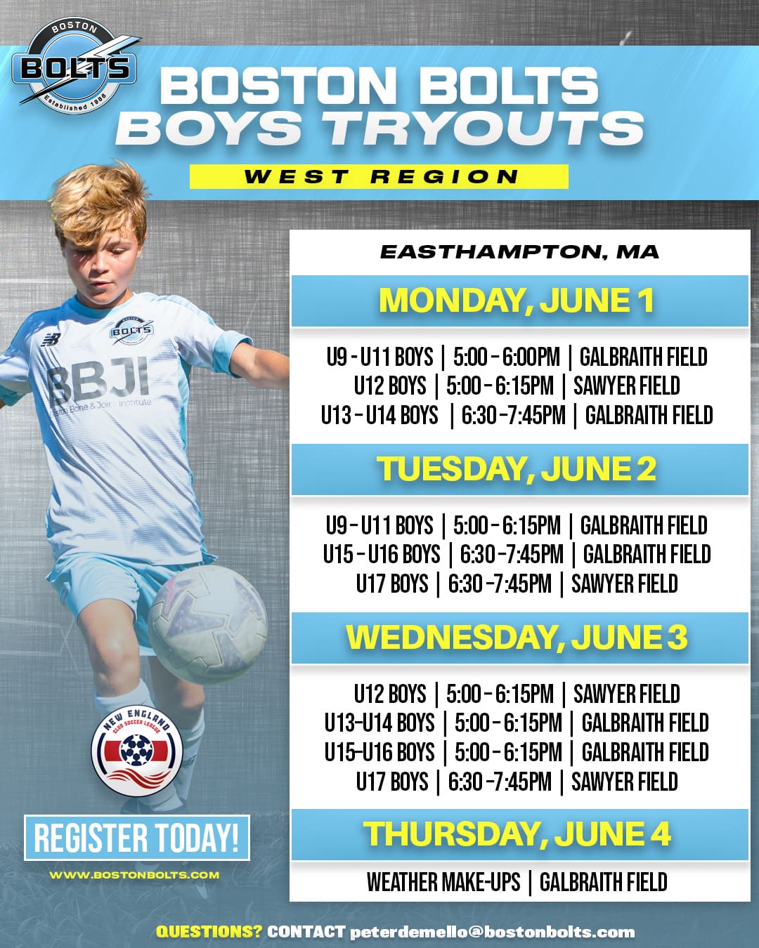 Program Director: peterdemello@bostonbolts.com